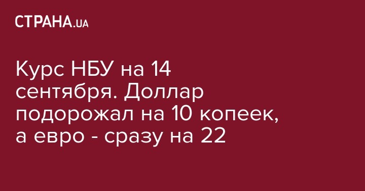 Национальная валюта по отношению к евро упала еще больше - на 21,5 копейки, до 32,68 гривен за евро. Так, официальный курс евро на 14 сентября установлен на уровне 3268,3386 гривен за 100 евро (+21,5154).