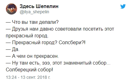 Пользователей развеселила версия "туристов" о том, что они два раза приезжали посмотреть собор в Солсбери, и намеки на их нетрадиционную ориентацию. Они тут же начали делать фотожабы с героями интервью и постить их в интернет. Одной из тем для шуток также стало предположение о том, что Петров и Боширов таки являются сотрудниками ГРУ под прикрытием.