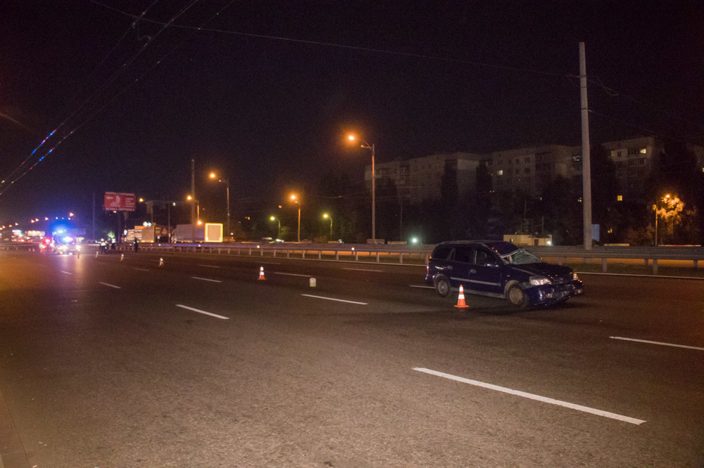 Пешеход перебегал через дорогу в неположенном месте и угодил под авто. Известно, что Opel двигался в сторону аэропорта "Жуляны". По словам свидетелей, его скорость была свыше 100 км/час.