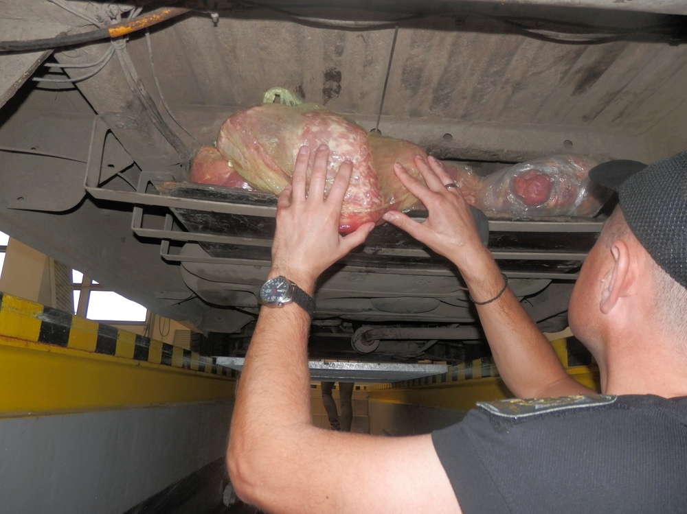 "В пункт пропуска "Грушев" прибыл микроавтобус "Renault" под управлением нашей соотечественницы. Женщина мастерски скрыла 396 килограммов свежей свинины в конструктивных особенностях транспортного средства, а именно в днище авто" – отмечают в Госпогранслужбе.