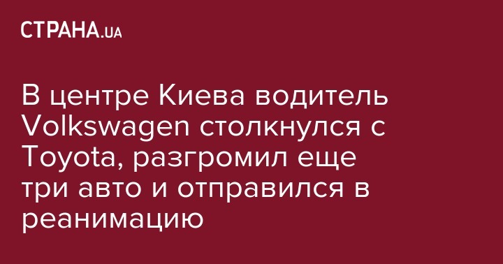 В центре Киева водитель Volkswagen столкнулся с Toyota, разгромил еще три авто и отправился в реанимацию