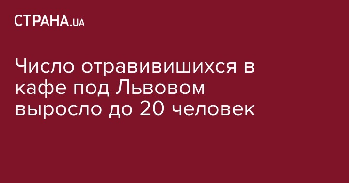 Число отравившихся в кафе "На гірці" под Львовом выросло до 20 человек, все они попали в больницу. Об этом говорится в сообщении Департамента по вопросам общественной защиты населения Львовской ОГА в Facebook.