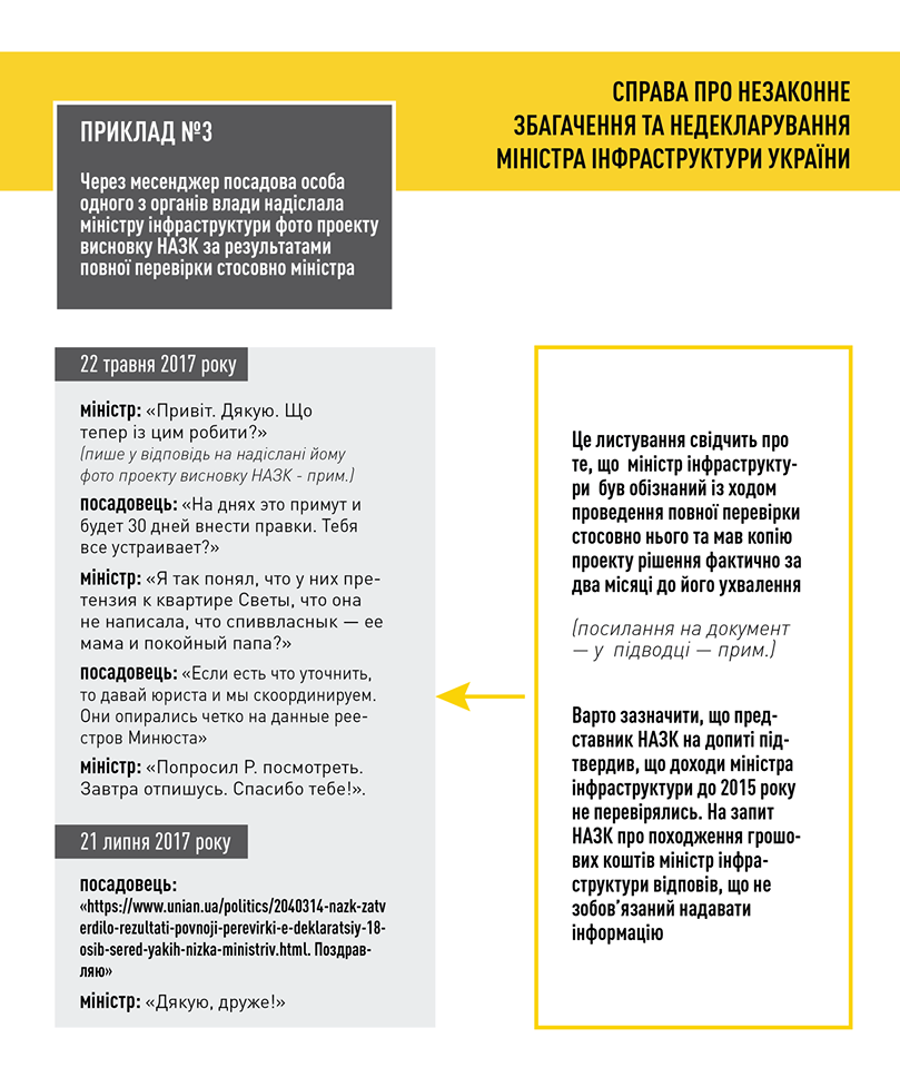В НАБУ утверждают, что опубликовали переписку Омеляна с его братом, посредником по покупке авто, должностным лицом одного из органов власти и его жены Светланы Бевзы с бывшим владельцем дома в Киевской области. Учитывая это, в НАБУ предполагают, что чиновник сознательно скрывал свое состояние.