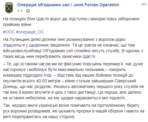 Об этом в понедельник, 24 сентября, сообщает пресс-центр штаба Операции объединенных сил (ООС).