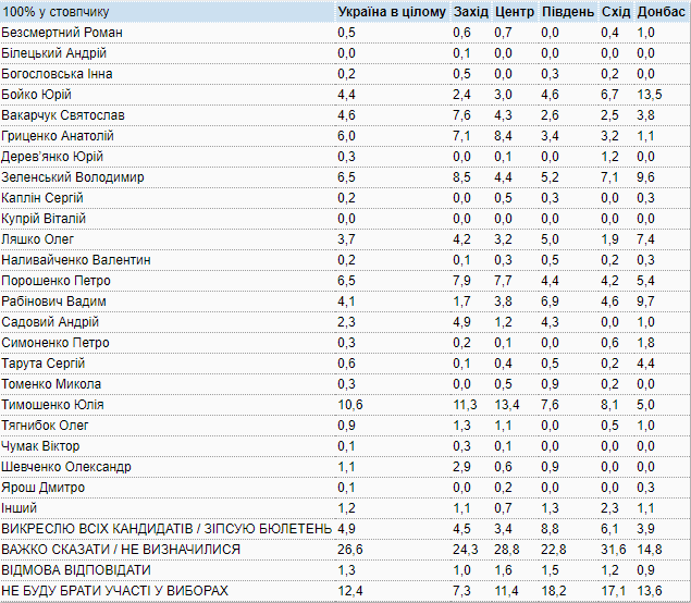 Итак, если бы выборы президента Украины проходили в сентябре, то из всех граждан Украины в возрасте от 18 лет электоральные настроения распределились бы следующим образом: