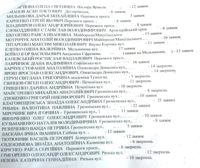 По данным преподавательницы музыки Натальи Коптенковой, списки были разосланы из КГГА в поликлиники. О существовании списков она впервые услышала от медсестры в районной поликлинике. И сообщила, что "в поликлинику поступили списки с фамилиями жителей, с их адресами и телефонами, с количеством жалоб, которые они оставили в коммунальные службы. Медсестрам дали задание по участкам позвонить или лично поговорить с людьми из списков и выяснить, почему они жалуются, а потом доложить руководству".
