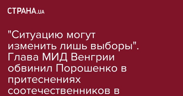 "Пока Украину возглавляет нынешний президент, подстрекательство к ненависти к венграм со стороны украинского государства не прекратится, поскольку президент считает это способом получить определенную общественную поддержку, которая сейчас очень низкая", - цитирует министра агентство. "Выборы в следующем году могут привести к изменению ситуации", - отметил Сийярто.