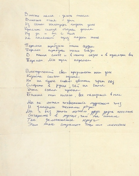 Черновой вариант песни "Хочу перемен" немного отличается от конечного. В песне Цой заменил "бога" на день Фото: litfund.ru