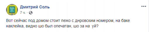 "Вот сейчас под домом стоит автомобиль с днровским номером. На баке наклейка, видно, что был опечатан", - написал Дмитрий Соль.