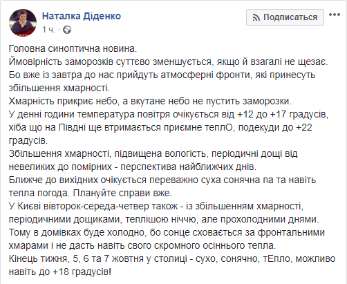Скриншот: Facebook/ Наталка Діденко