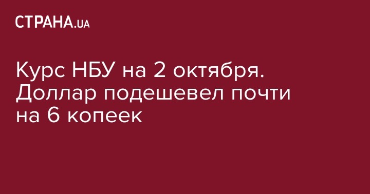 Курс НБУ на 2 октября. Доллар подешевел почти на 6 копеек
