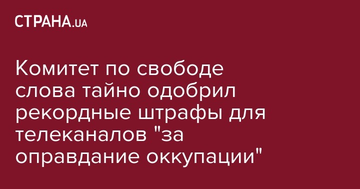 Комитет Верховной Рады по информационной политике и свободе слова рекомендовал парламенту принять в первом чтении за основу законопроект №9068, который уполномочивает Нацсовет по вопросам телевидения и радиовещания штрафовать телерадиоорганизации за "оправдание оккупации Украины"Об этом сообщают "Украинские новости".