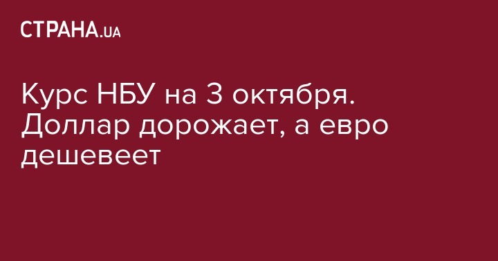 Курс НБУ на 3 октября. Доллар дорожает, а евро дешевеет
