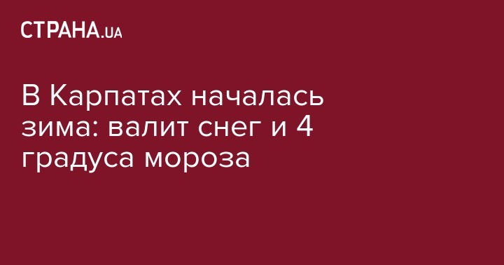 В Карпатах на горе Поп Иван Черногорский идет снег, а температура воздуха опустилась до -4 градуса. Об этом говорится в сообщении Черногорского горного поисково-спасательного поста на странице в Facebook.