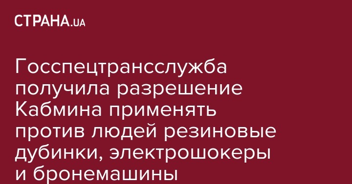 Госспецтрансслужба получила разрешение Кабмина применять против людей резиновые дубинки, электрошокеры и бронемашины