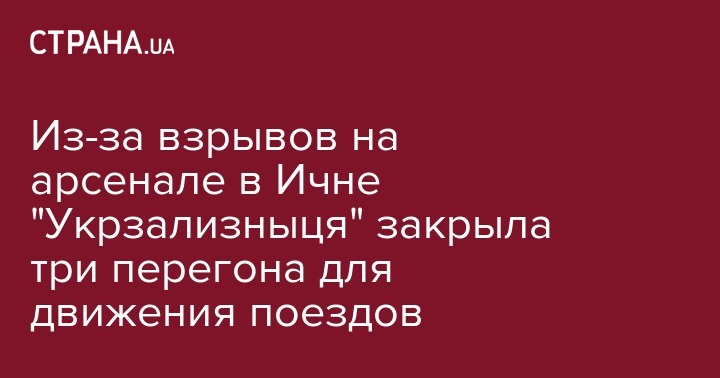 Из-за взрывов на шестом арсенале ВСУ в Ичне Черниговской области "Укрзализныця" закрыла три перегона для движения поездов. Об этом сообщает пресс-служба ведомства.