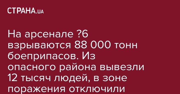 На арсенале №6 взрываются 88 000 тонн боеприпасов. Из опасного района вывезли 12 тысяч людей, в зоне поражения отключили свет и газ