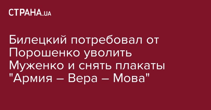 Также Билецкий раскритиковал плакаты про "Армию, Мову, Веру", призвав президента убрать их с улиц.