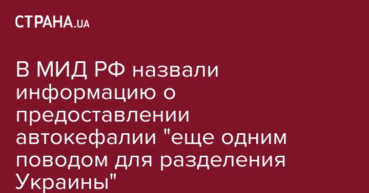 В МИД РФ назвали информацию о предоставлении автокефалии "еще одним поводом для разделения Украины"