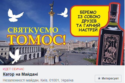 "Томос есть. Решение принято. Впереди еще выборы Патриарха единой церкви, официальное вручение документа об автокефалии, визит Вселенского патриарха и многие, многие другие события. Но это будет потом. А сейчас - время праздника, который страна ждала больше чем три столетия", - говорится в описании мероприятия, которое активно промотировали так называемые "порохоботы" (блогеры, лояльные президенту). Из-за чего акцию сразу окрестили "порохоботской".