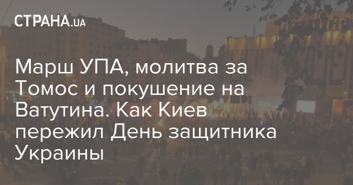 Распорядок дня сегодня таков: с 9 утра молебен, после него "ОУН" собрались сносить памятник Ватутину в Мариинском парке, около 14:00 начнутся официальные мероприятия в честь Дня защитника, а вечером, в 16:00 - марш националистов. "Страна" следит за всеми перипетиями этого дня в режиме онлайн.