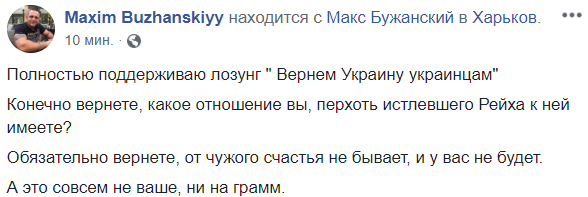 Обязательно вернете, от чужого счастья не бывает, и у вас не будет. А это совсем не ваше, ни на грамм", - пишет блогер Макс Бужанский.