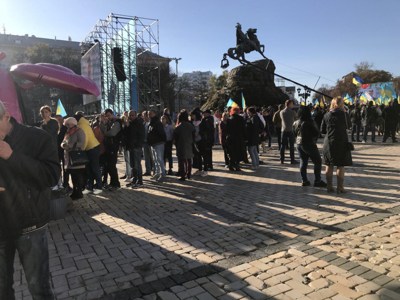 9:45  Когда кортеж Порошенко подъезжал, организаторы митинга говорили, что часть людей разбежалась, а им  еще нужно нужно отмечаться.