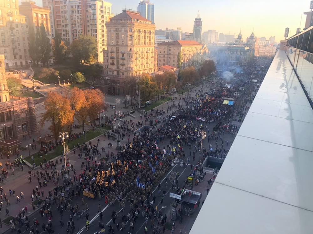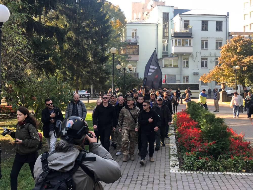 16:07  К колонне присоединятся ещё пять сотен активистов Нацкорпуса. Еще сотни три нацдружинников ждут их на бульваре Шевченко.