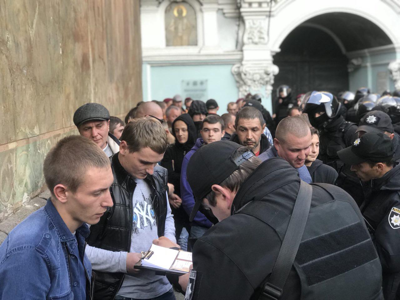 16:43  Под Лаврой тем временем полиция заблокировала возможных провокаторов. Неизвестных молодых людей прижали к лаврской стене и проверяют у них документы. Они пытались пройти на территорию - и не могли ответить, зачем.