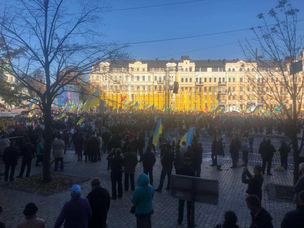 18:44  Сейчас начнут массово петь гимн националистов "Зродились ми великої години". Будут идти на рекорд. Оказывается, все участников посчитали при входе. Для тех, кто не знает слова, обещают субтитры на экранах. Не все националисты знают свой гимн.