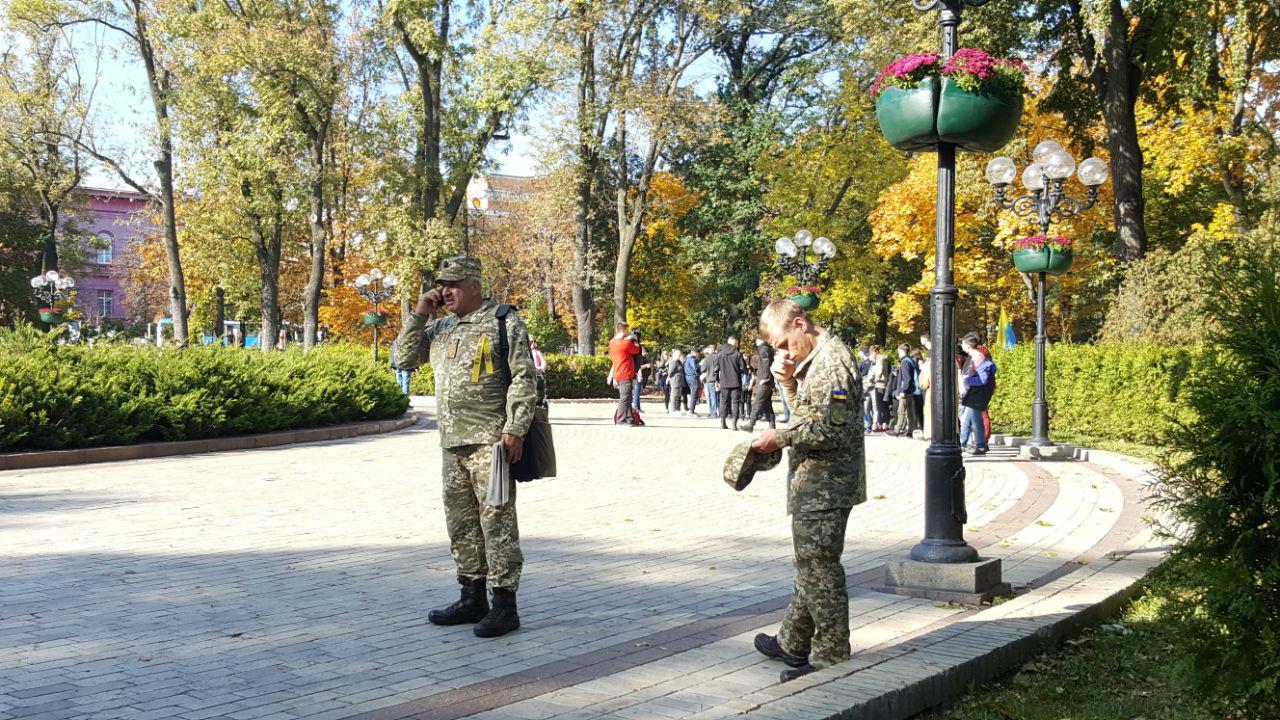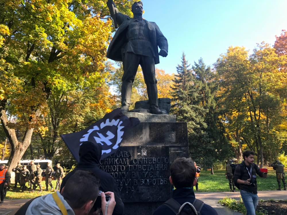 11:55  После неудачи у памятника №1 Коханивский в громкоговоритель заявил, что теперь идут к монументу Ватутину в этом же парке.