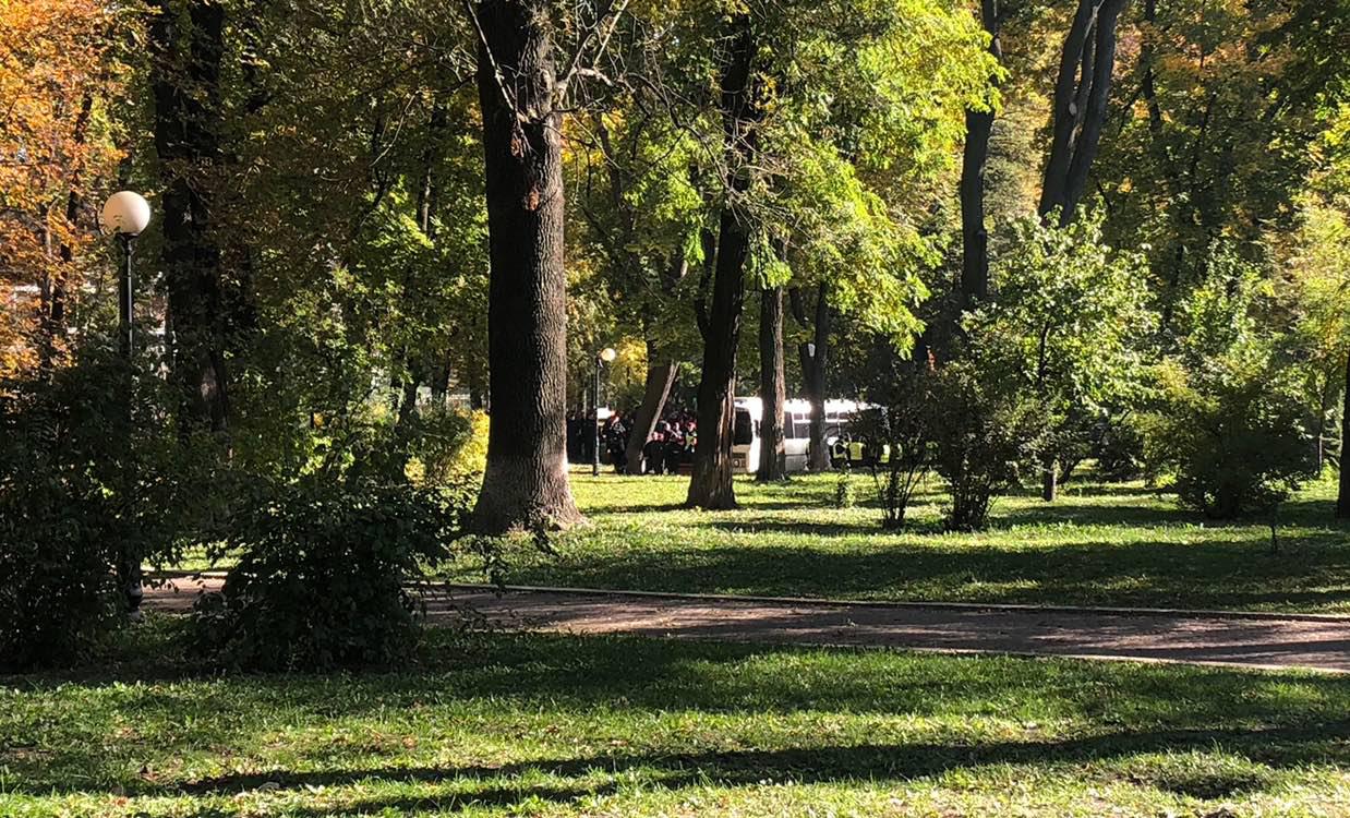11:25  Представители праворадикалов уже идут по Мариинскому парку. Многие их них закрыли лица балаклавами.