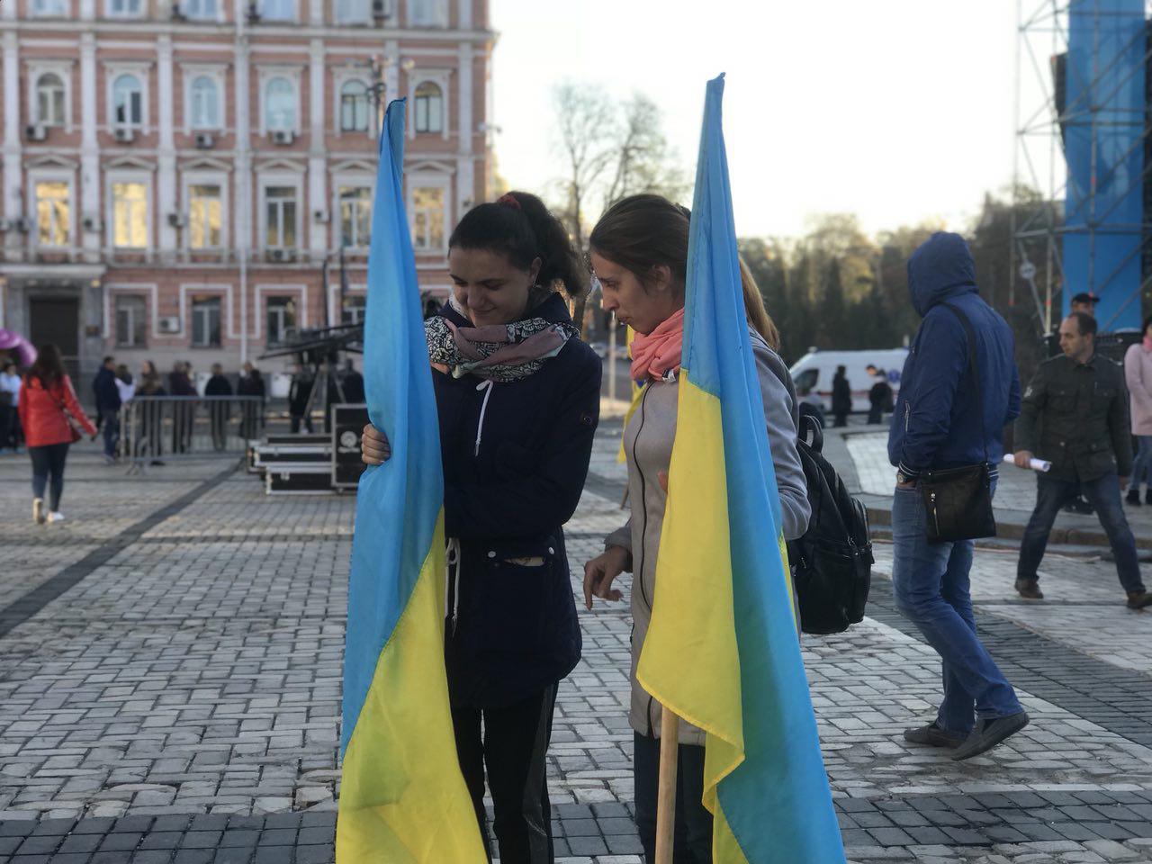 9:39  Люди в основном сконцентрированы ближе к трибунам. Дальше площадь достаточно свободна. У последнего экрана, транслирующего Порошенко, народу немного. Видимо, рассчитывали, что людей будет больше.