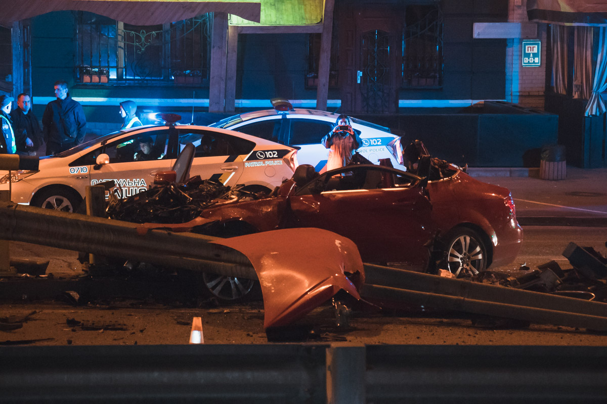 Ночью в Киеве Mercedes влетел в отбойник, двое погибших. Фото и видео