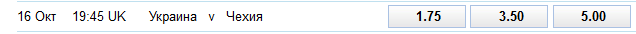 Авторитетная британская контора William Hill принимает ставки на победу украинской сборной с коэффициентом 1,75, кэф на победу чехов - 5,00, ничья оценивается коэффициентом в 3,50.