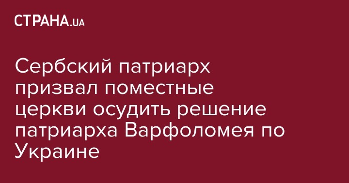Сербский патриарх призвал поместные церкви осудить решение патриарха Варфоломея по Украине
