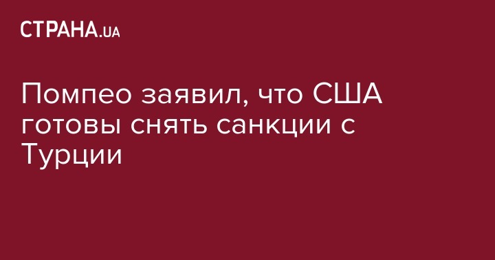 Ряд санкций, введенных США против Турции, могут быть сняты в связи с возвращением пастора Эндрю Брансона домой. Об этом Госсекретарь США Майк Помпео заявил после встречи в Стамбуле с главой МИД Турции Мевлют Чавушоглу, сообщает Bloomberg.
