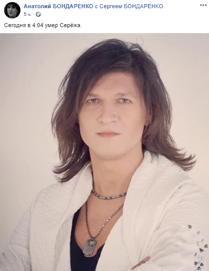 "Сегодня в 4:04 умер Сережа", - написал музыкант в Facebook.