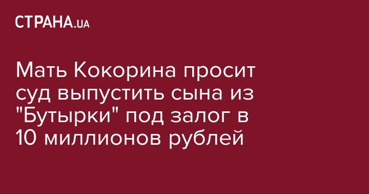 Крупную сумму в 10 миллионов рублей за него готова внести его мать Светлана Кокорина, передает СЭ в своем Twitter.