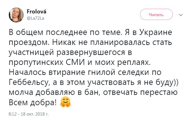 В своем Twitter-аккаунте Мотузная уточнила, что на Украине находится проездом и планирует просить политическое убежище в другой стране.