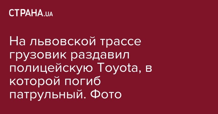 В результате лобового столкновения патрульной машины и фуры на автодороге "Тернополь-Львов-Рава-Русская" погиб 22-летний полицейский из Львова, сообщила пресс-служба Национальной полиции Украины в Facebook.