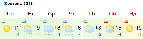 Ресурс Мeteoprog.ua дает похожий прогноз, но по данным этого ресурса самые холодные дни недели четверг и пятница, а среди недели будет идти дождь, но не обильный и без снега. На выходных +13...+19, пасмурно.