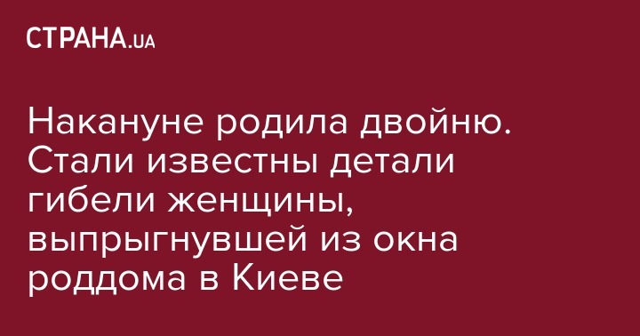 Полиция рассказала подробности трагедии в Шевченковском районе Киева, где сегодня 32-летняя роженица выпрыгнула с 7 этажа роддома и разбилась насмерть. Об этом сообщает пресс-служба полиции Киева.