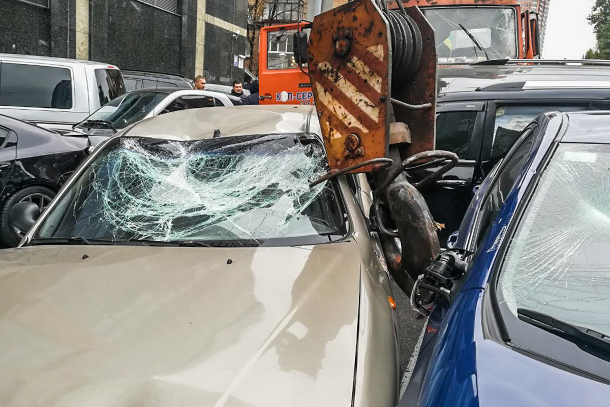 Появились новые фото эпичной аварии в центре Киева, где автокран снес 17 авто