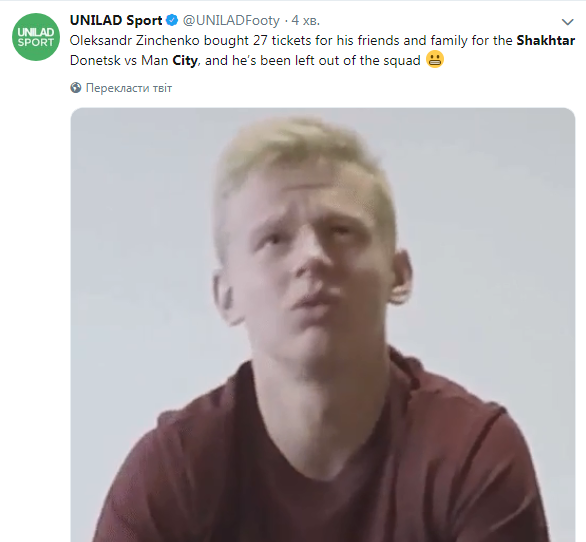 - Полузащитник сборной Украины и Манчестер Сити Александр Зинченко купил 27 билетов на игру для своих друзей и знакомых.