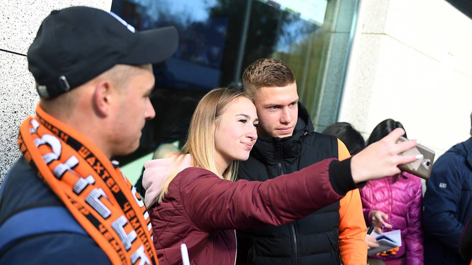 20:55 В день матча футболисты и тренер Шахтера традиционно прогулялись по городу и сфотографировались с болельщиками.