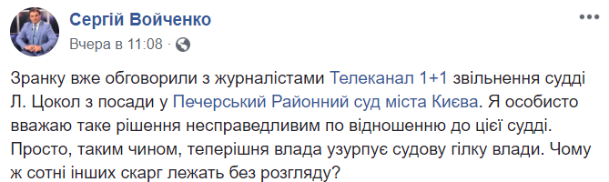 Адвокат Сергей Войченко также выступает против увольнения Цокол: