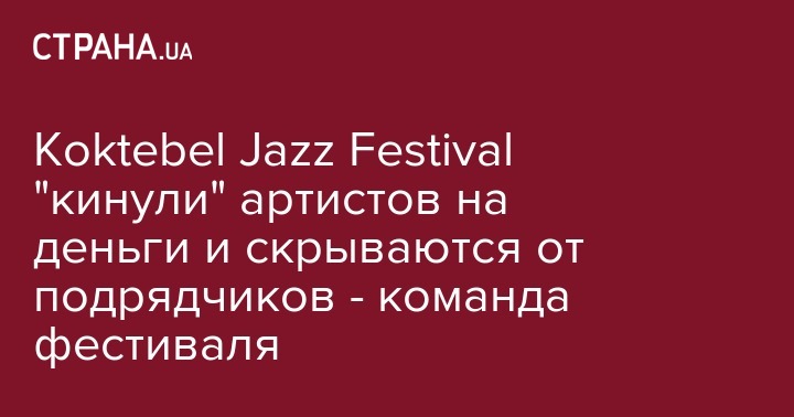 Организаторы музыкального фестиваля Koktebel Jazz Festival не оплатили работу команде феста, а также не выплатили гонорары артистам, среди которых . Об этом в Facebook сообщили члены команды фестиваля.