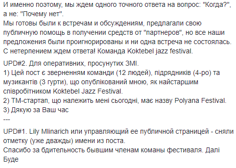 Команда фестиваля сообщает, что ни Лилия Млинарич, ни исполнительный директор феста Кирилл Млинарич на их вопросы не отвечают.