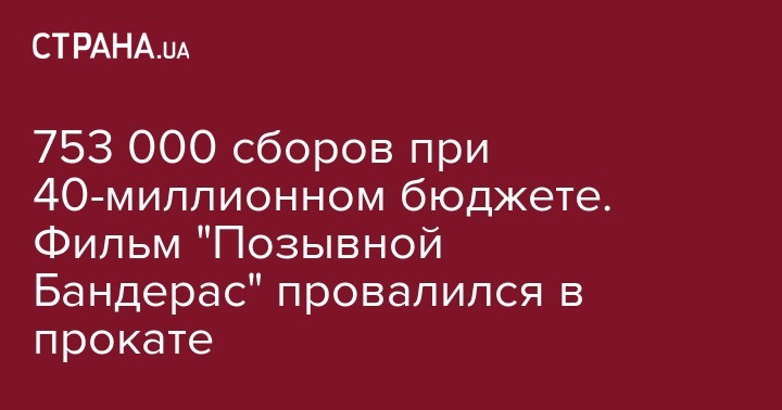 Так, при 40-миллионом бюджете, фильм на первые три недели проката собрал чуть больше 753 тысяч гривен.